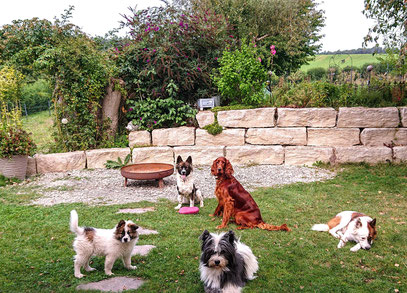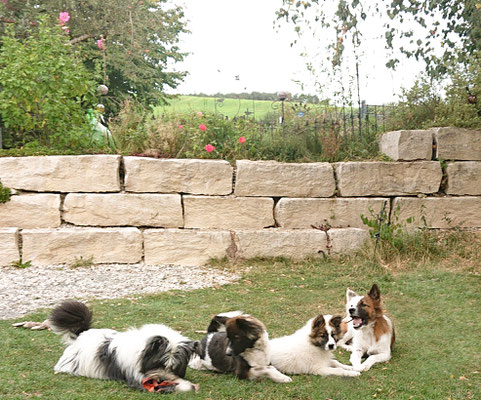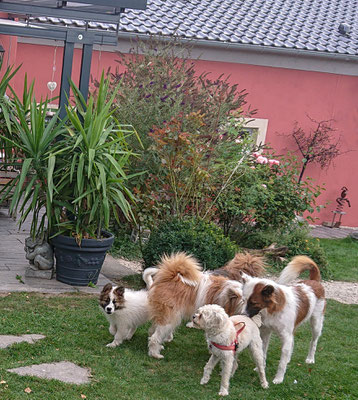 Er ist ein fröhlicher, sehr menschenbezogener Hund. Er läuft bei uns im Rudel in Haus und Garten einfach mit.