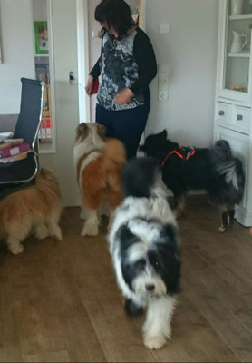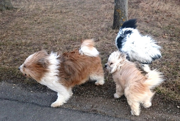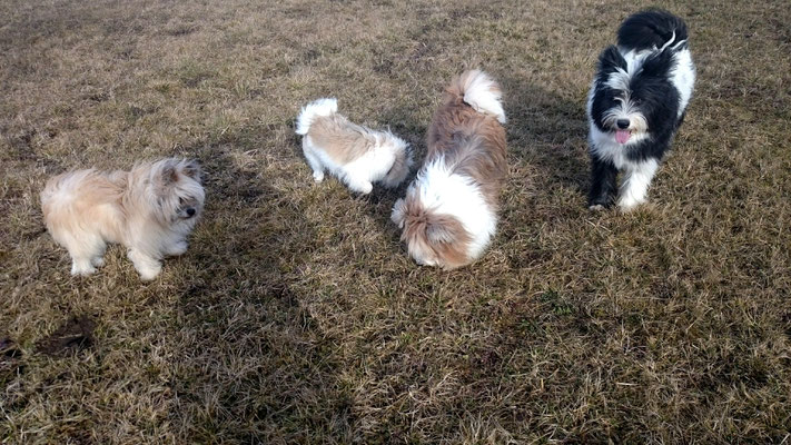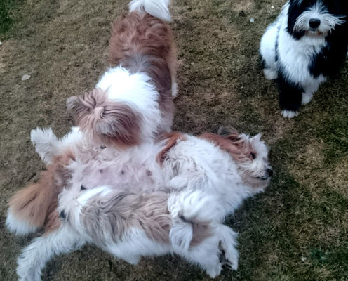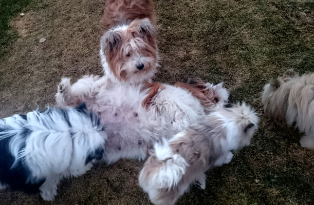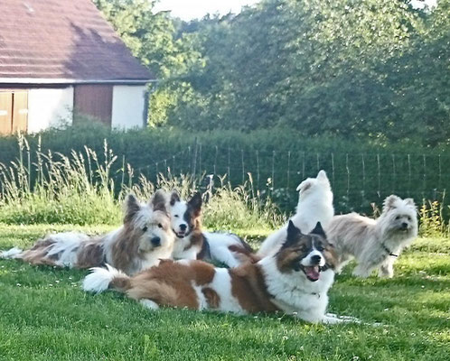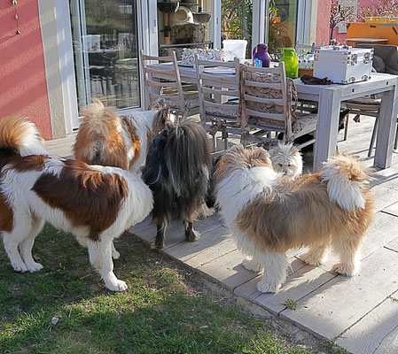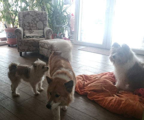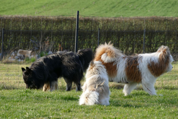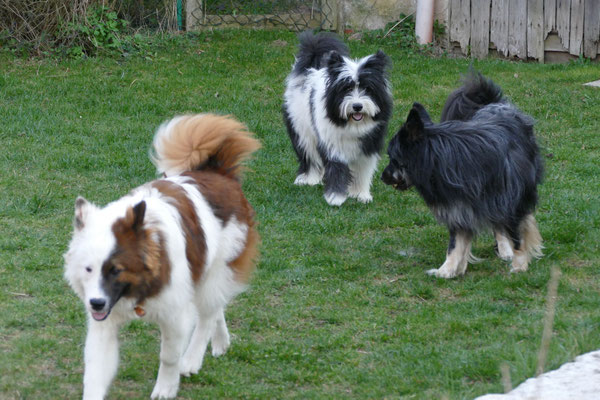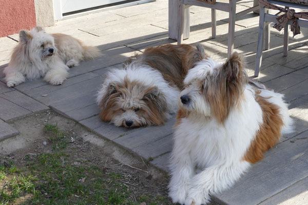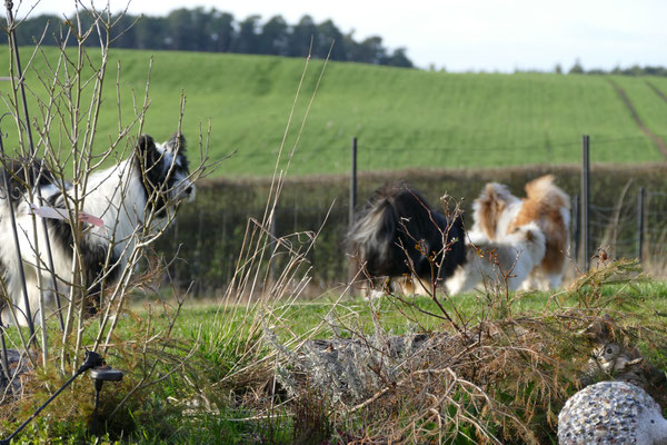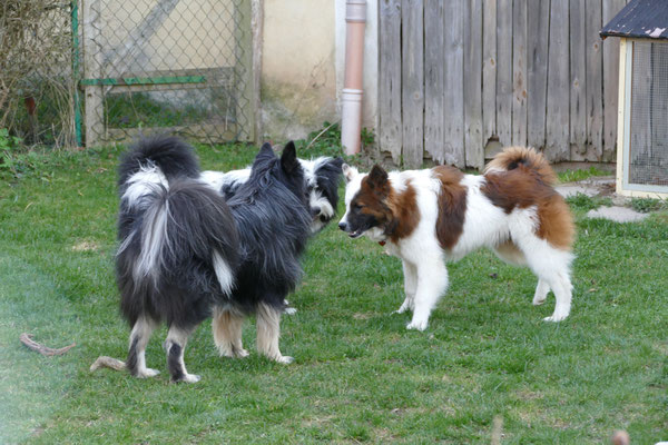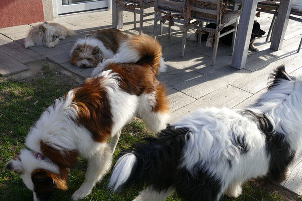 Gaudi mit O-Sambas Schwester Oralie-Lilly und den glatten Jung-Elo-Hündinnen Shari und Tiffi vom Hohen Licht.