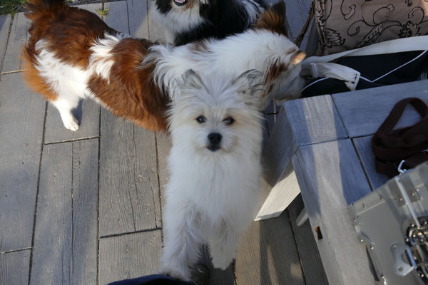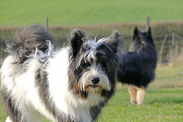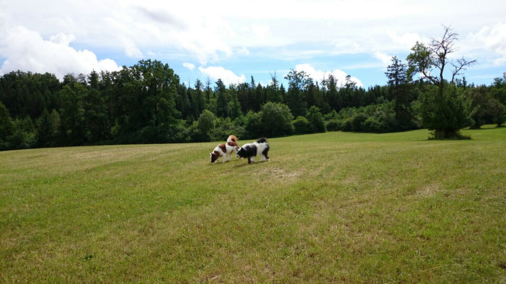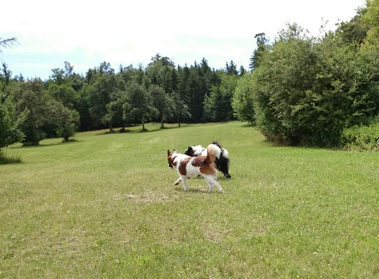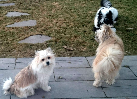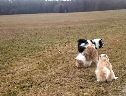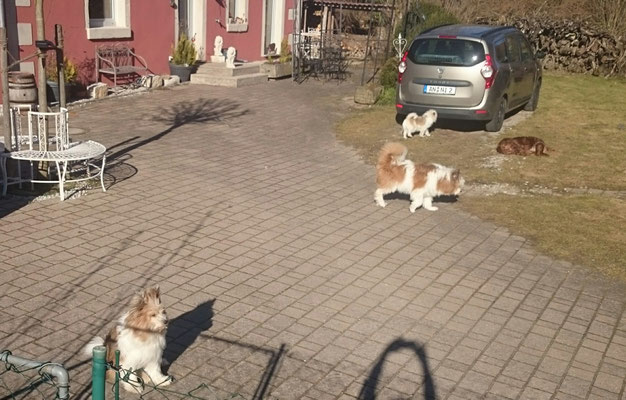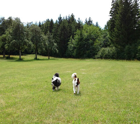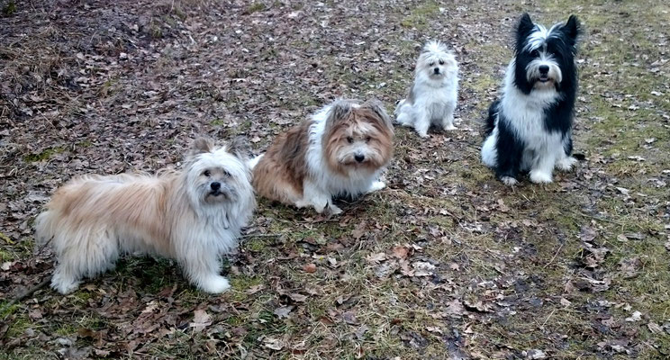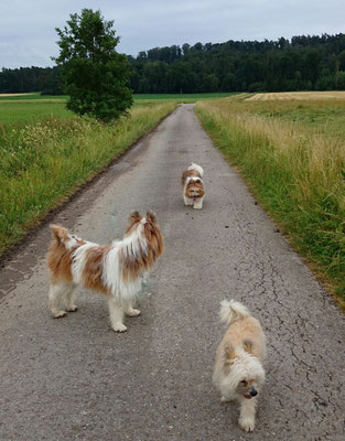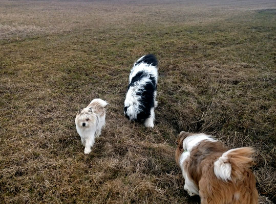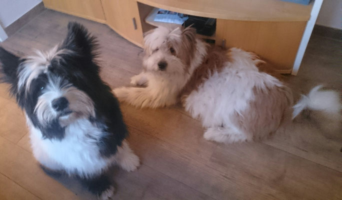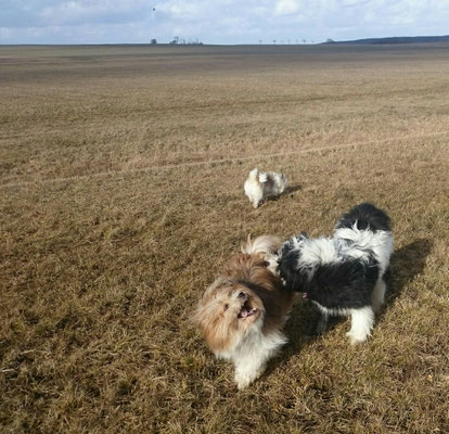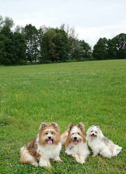 Gaudi mit O-Sambas Schwester Oralie-Lilly und den glatten Jung-Elo-Hündinnen Shari und Tiffi vom Hohen Licht.