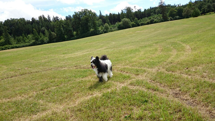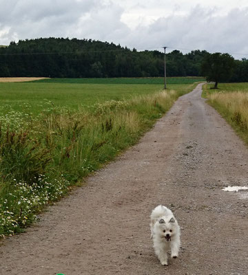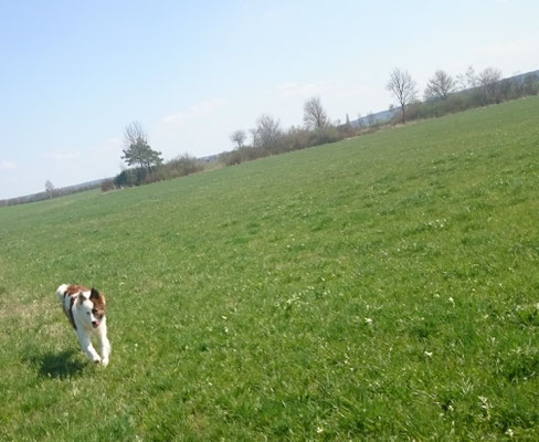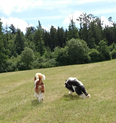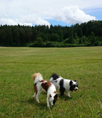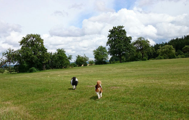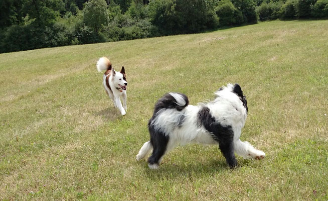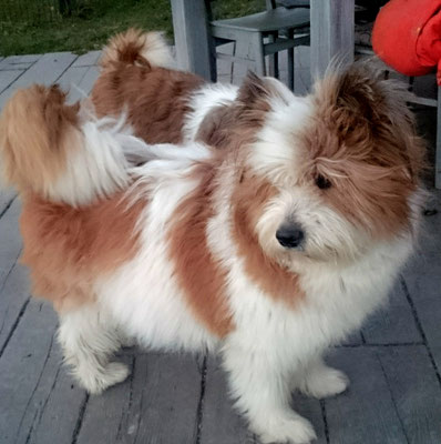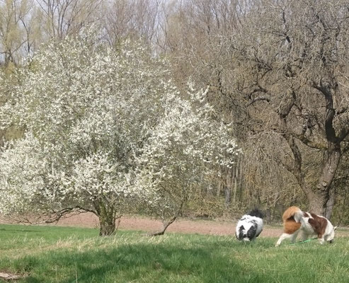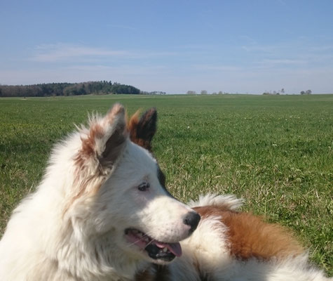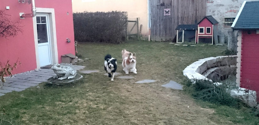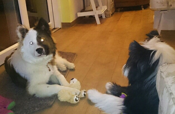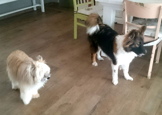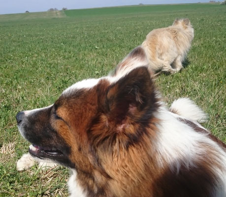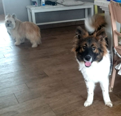 Wir haben uns in eine Junghündin verliebt und sie uns zum 29. Hochzeitstag geschenkt :-) . Ab jetzt gehört auch die glatthaarige Elo-Hündin Quamila von der kleinen Oase zu unserer Truppe.