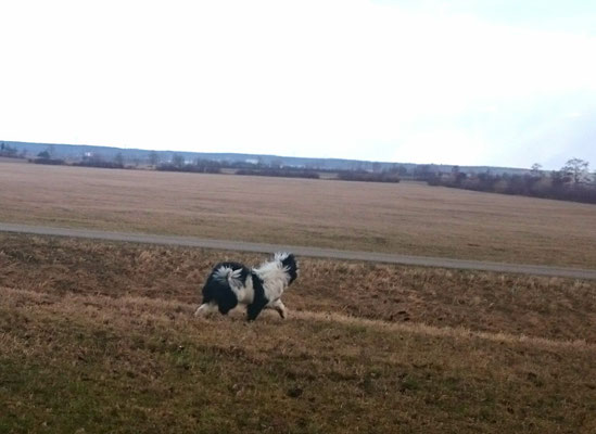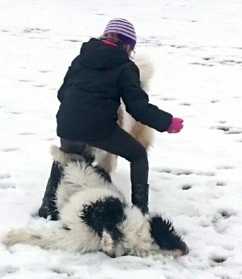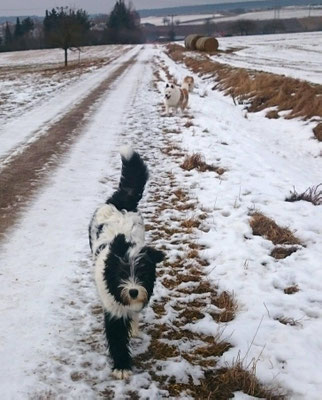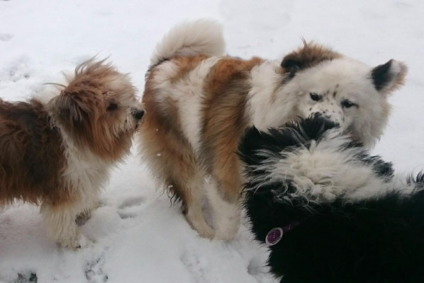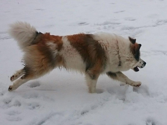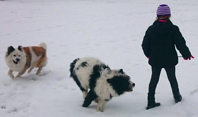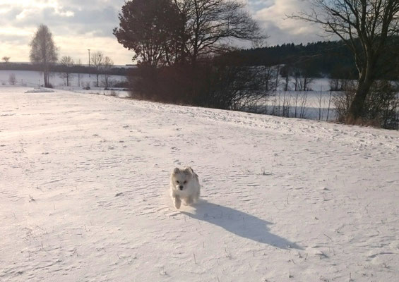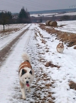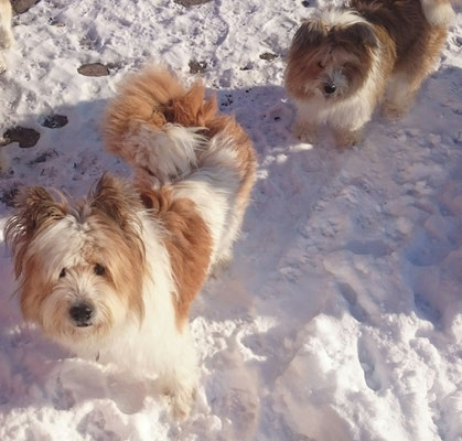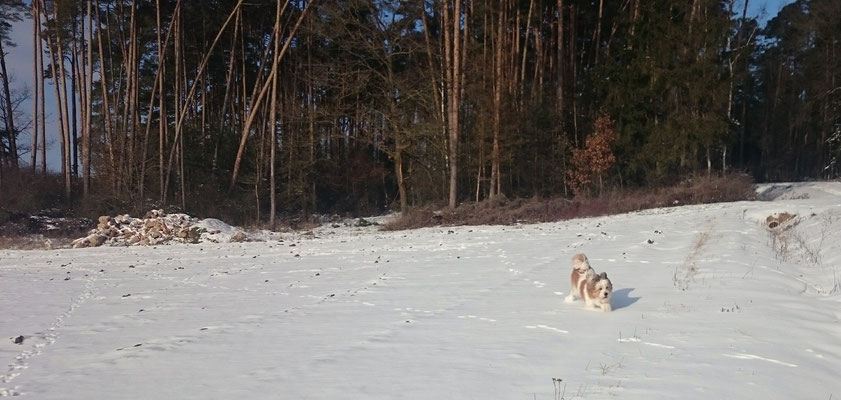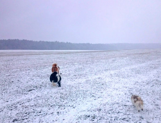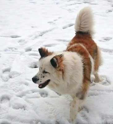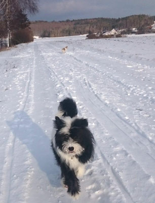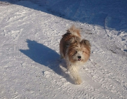 Tschakkas erster Schnee - mit jungen Hunden macht es besonders viel Spaß, durch die weiße Winterlandschaft zu spazieren.