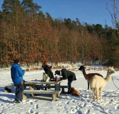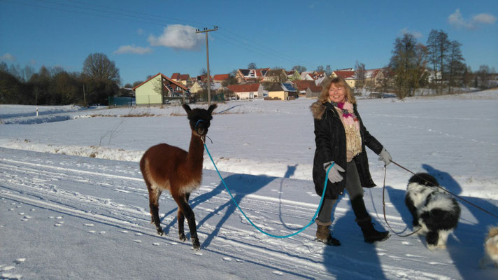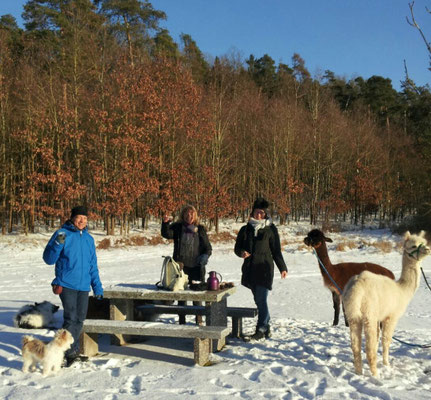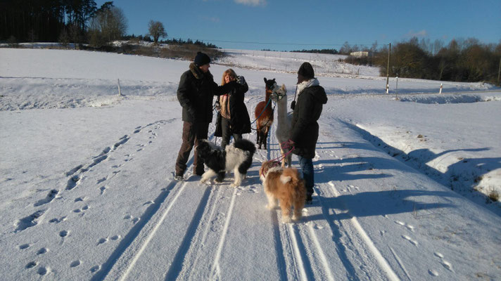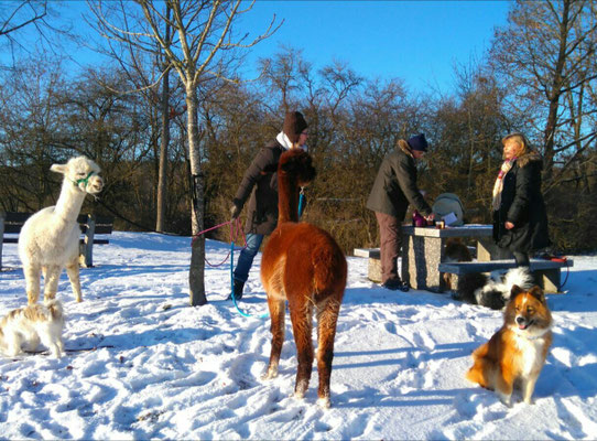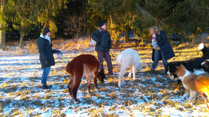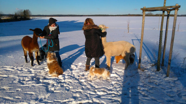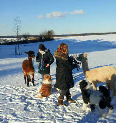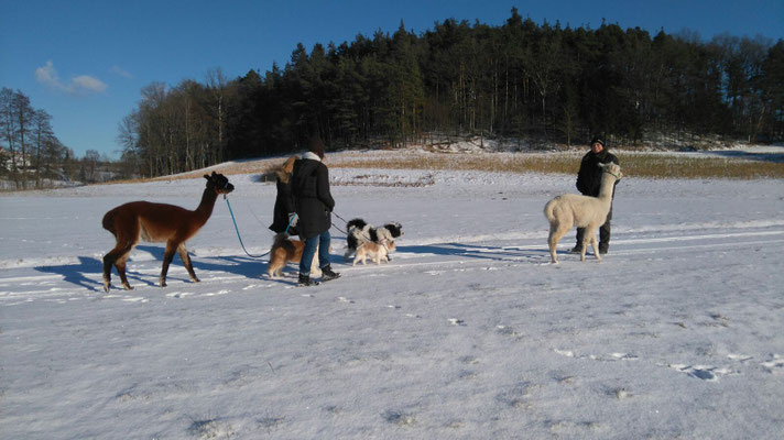 Wir haben zu Jahresanfang einen wunderschönen Alpaka-Spaziergang mit Freunden gemacht.